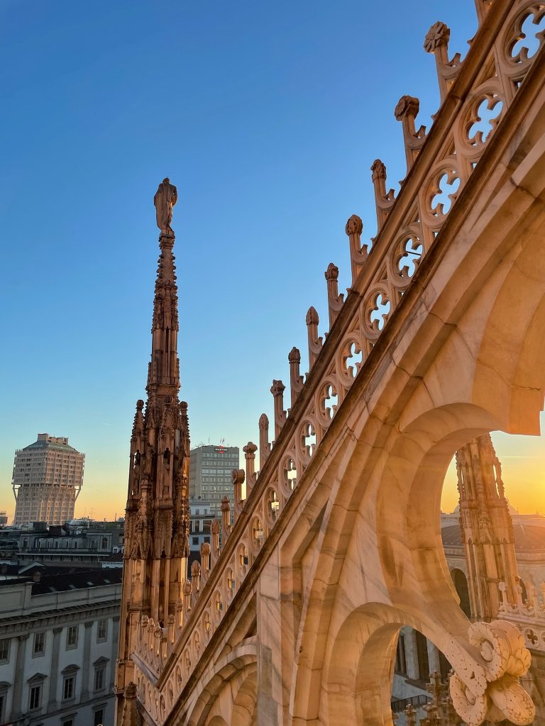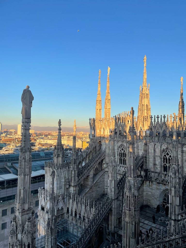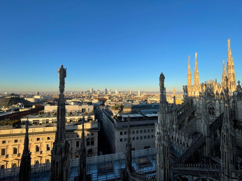 Der Weg führt uns zuerst zum Mailänder Dom. Besonders der Besuch der Dachterrassen bleibt im Gedächtnis. Von oben wirkt die Stadt weiter und ruhiger, fast übersichtlich. Danach lassen wir uns treiben, laufen durch eine der typischen Passagen und steigen später in eine der historischen Straßenbahnen ein. Mit etwas Glück erwischt man eine der alten Ventotto-Trams aus den 1920er-Jahren. Holzsitze, Metallgriffe und dieses eigene Fahrgefühl machen selbst eine kurze Fahrt zu etwas Besonderem.