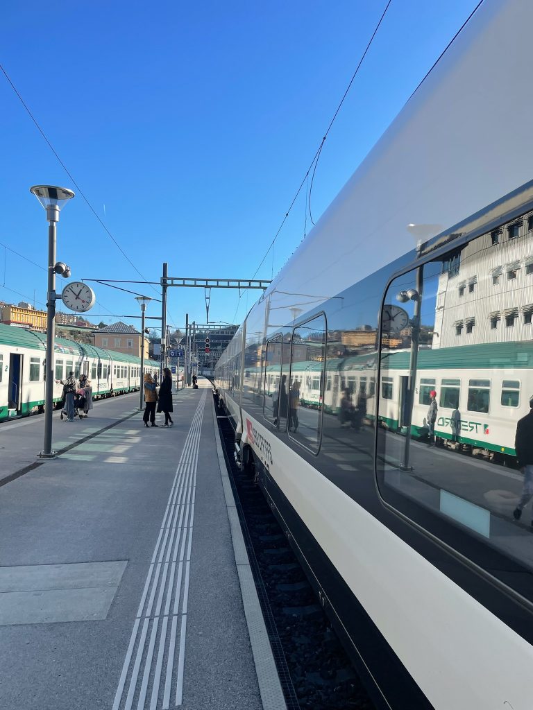 Für uns geht es zunächst über Zürich weiter Richtung Italien. Wir planen dort bewusst eine Stunde Umstiegszeit ein. Die knappen Anschlüsse aus Richtung Stuttgart oder Singen sind zwar machbar, fühlen sich aber oft gehetzt an. Mit etwas Puffer bleibt Zeit, anzukommen. In Zürich nutzen wir die Umstiegszeit und beobachten das Treiben, bis wir anschließend ganz entspannt in den EuroCity einsteigen.