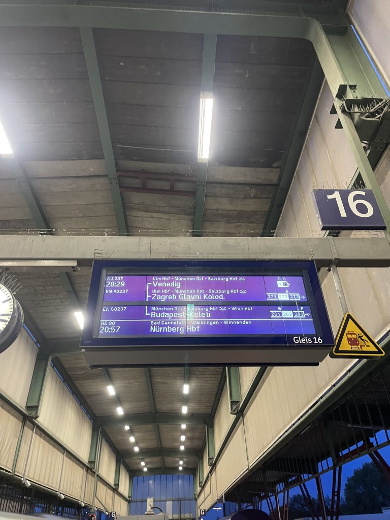 Bevor es richtig losgeht, beginnt allerdings erst einmal die Suche nach dem richtigen Wagen. Der EuroNight besteht aus mehreren Zugteilen mit unterschiedlichen Zielen, darunter Budapest, Zagreb und Venezia. Die Anzeigen am Bahnsteig sind dabei nicht immer eindeutig. Häufig wird nur eine Relation angezeigt, manchmal auch einfach nur die Zugnummer 237. Diese steht für den durchgehenden Lauf von Stuttgart bis Venedig. Wer nach Zagreb möchte, muss deshalb genauer hinschauen und im Zweifel noch einmal die Wagenreihung prüfen. Hat man den richtigen Wagen gefunden, wird es deutlich entspannter.