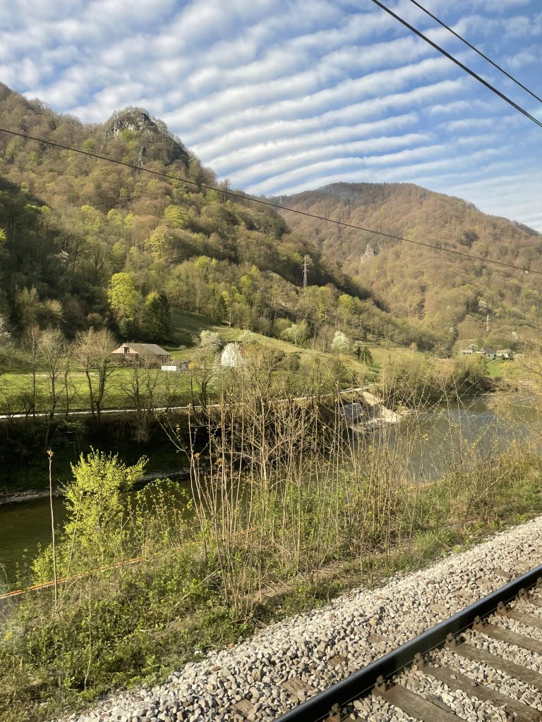 Die Landschaft wirkt ruhig und weit. Wälder, Hügel und kleine Orte ziehen vorbei. Immer wieder gibt es Bahnübergänge, viele davon unbeschrankt. Die Lokomotive kündigt sich jedes Mal mit einem deutlichen Signalhorn an. Dieses Hupen begleitet die Fahrt über längere Zeit und bleibt im Kopf.